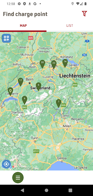 - Map view of all available charging stations to plan your route.