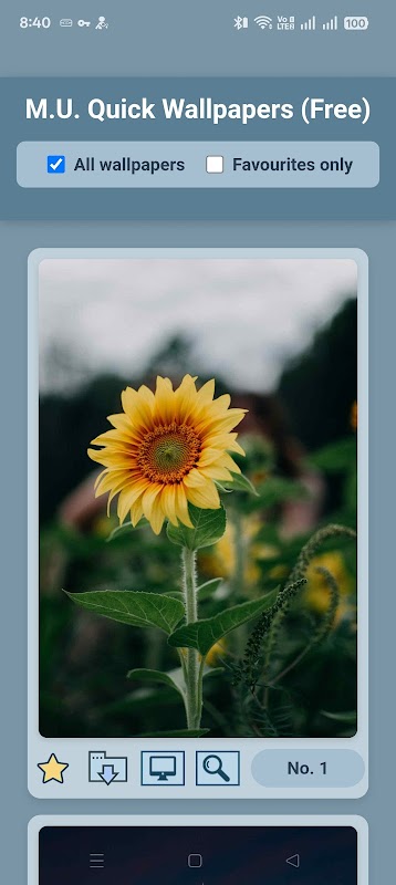 You can mark wallpapers as favorite, and you can access favorited wallpapers. You can save wallpapers directly to your phone's storage, and you will find them inside Documents folder of Android, in MU_QuickWallpapers folder.