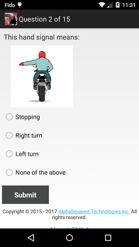 This app will help you get your written test done. It focuses strictly on motorcycle-related questions (don't waste time on basics of driving theory!) for the exam and covers all the important information from Motorcycle Handbook. Check yourself or learn faster with quizzes.