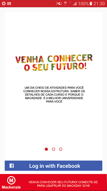 Come and meet your future! A day of activities for you to know our structure and learn the details of each course. Walk through the campus and use the phone to collect badges and answer quizzes, come to the Mackenzie Day, because the Mackenzie is the best university for you!