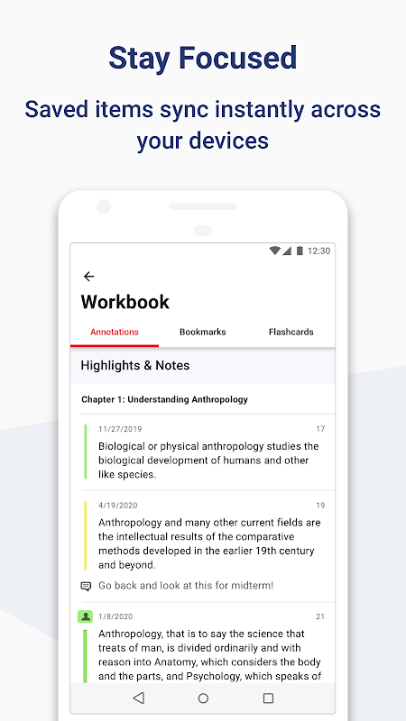 • Sync your current reading position and all your work across devices so you can easily pick up where you left off.
