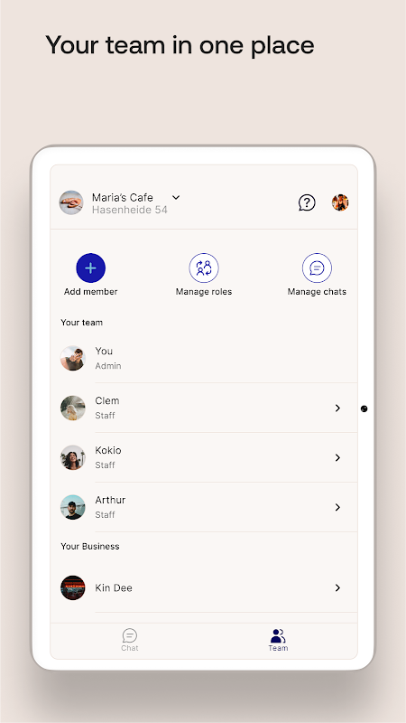 - Team Communication: Chat with your team and sales reps; devices are synced across your team to keep everyone updated.