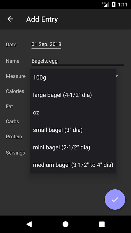 Don't know the nutritional values of the food you just ate? No problem! Make a quick Database search and voilá! All set.