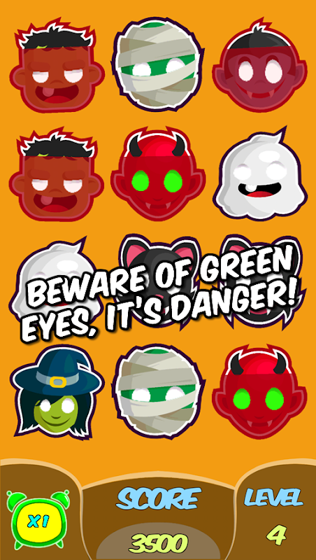 ● Don’t Touch the Mad Heads with Green Eyes, they are Danger, will end your game.