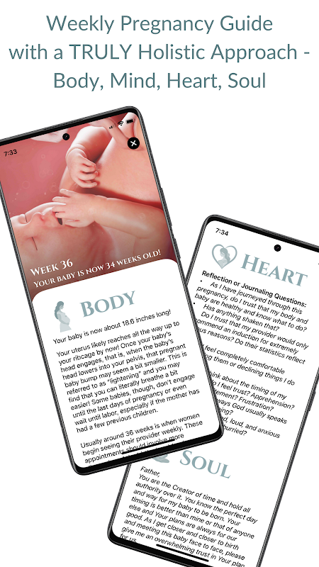 • Weekly Pregnancy Guide with information, prayer, journaling prompts, and an integrated, holistic approach to your pregnancy unlike any other pregnancy tracker available.