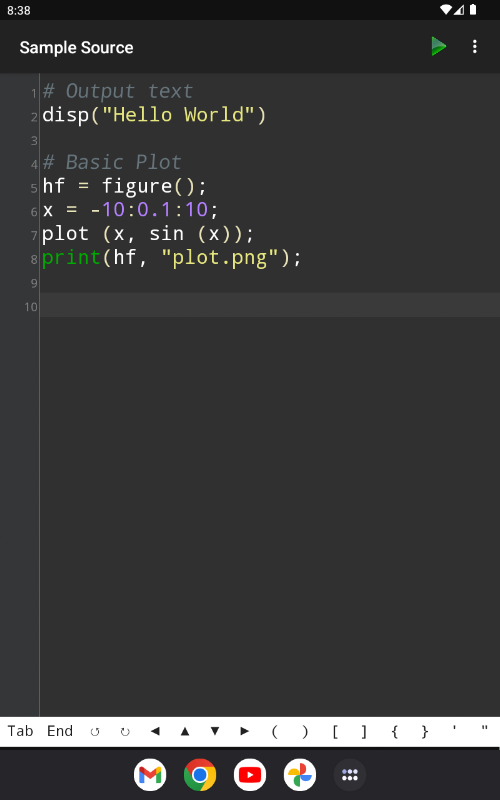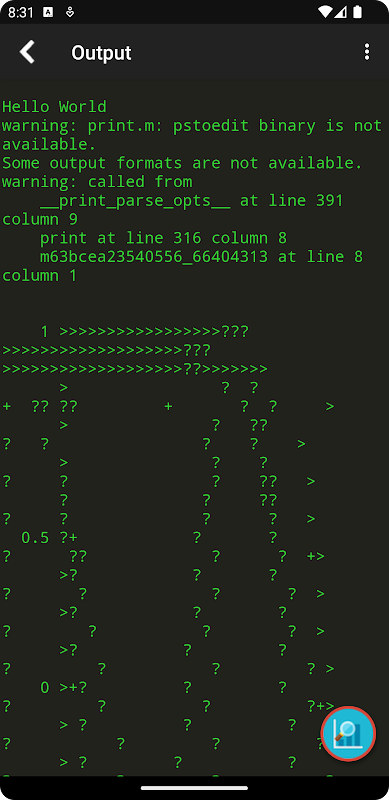 This app provides a mobile environment that allows you to execute Octave/MATLAB using the GNU Octave compiler.
