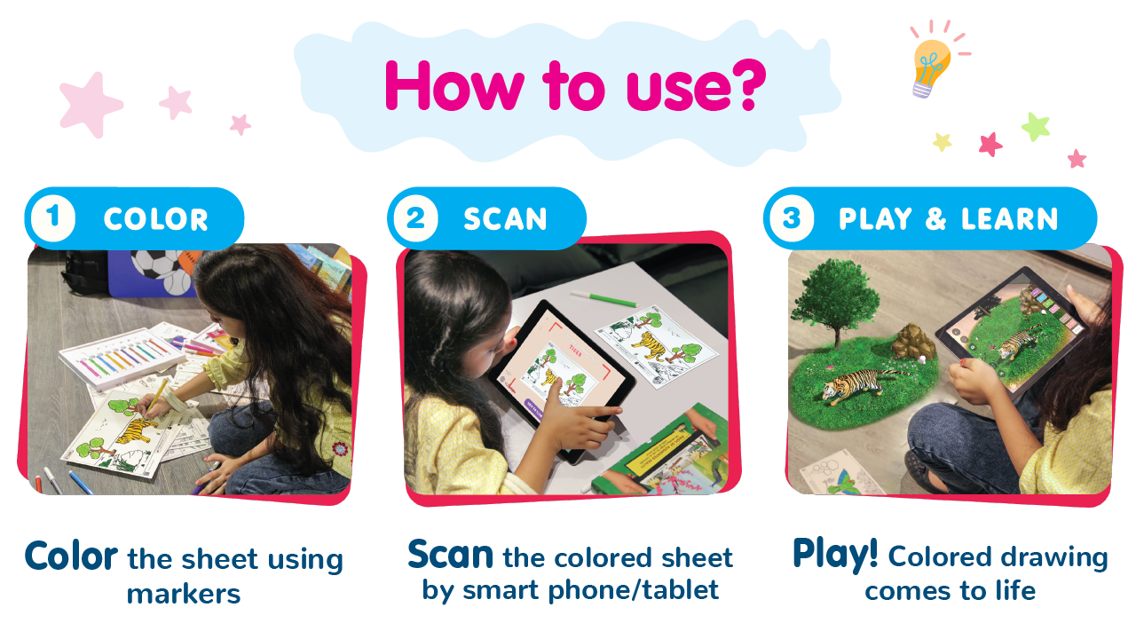 Augmented reality (AR) has added immense fun to coloring. It is the future of learning and fun. We all have colored the coloring books all our childhood. But it was never so much fun! It’s time for you and your kids to experience magical and fun coloring.