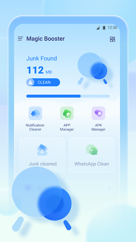 Magic Booster will remove unnecessary files, identify junk data and clean the junk files from app leftovers, cache, temporary files and more.