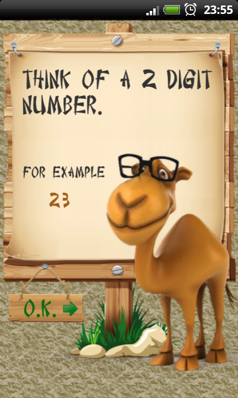 Android game "Magic Camel" involves camel asking the player to pick a random 2 digit number. In few steps the camel will find out your number. Do not believe? Try it now!