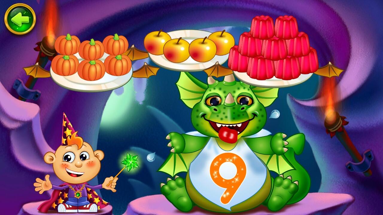 "Feed the little dragon!" - kids learning apps for age 4 free, feed the hungry little dragon as much as he needs! (Counting for toddlers)