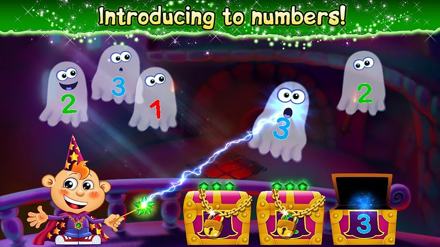 "Castle of Ghosts!" - help the Little Wizard catch and lock all the prankish ghosts into the chest. Counting for kids