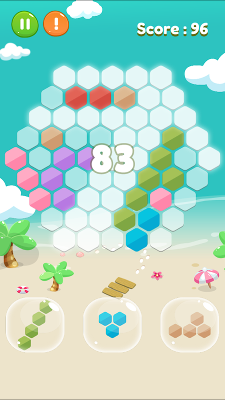 It is an innovative Tetris game, not including squares, but including all kinds of hexagon combos.