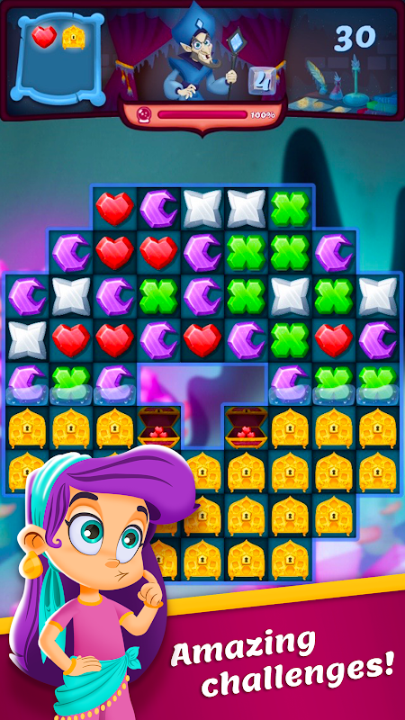 Come and help Princess Aisha to get back the Kingdom’s gems and jewels and rescue her cute animal friends. Villains have stolen the precious treasure of the entire eastern Kingdom! Put your puzzle-solving skills to the test in this marvellous and colorful world by not only using great combos, but also with the help of your pets’ super power-ups! Build your Pearl Power to defeat the wacky villains in great match-3 battles and Aisha’s gathering talents!