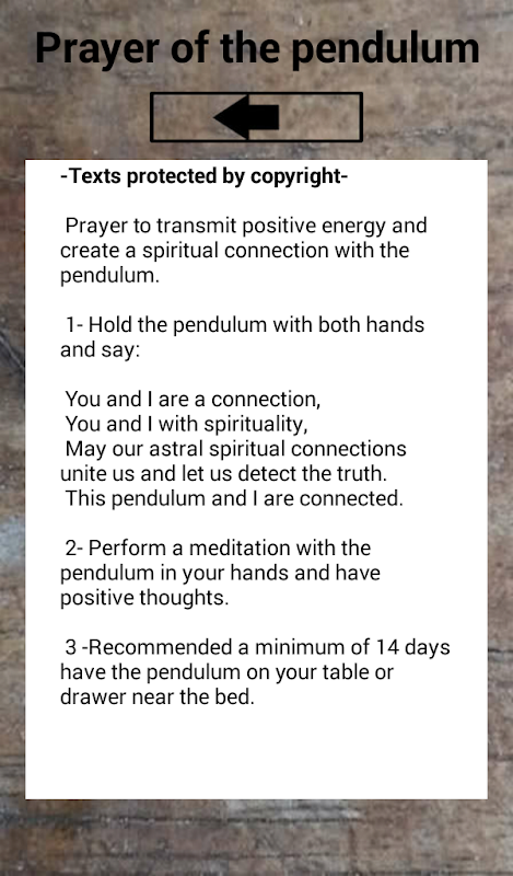 This application will explain how a pendulum works and how to perform the first esoteric tests. It also includes some prayer to channel positive energy with the pendulum and more information