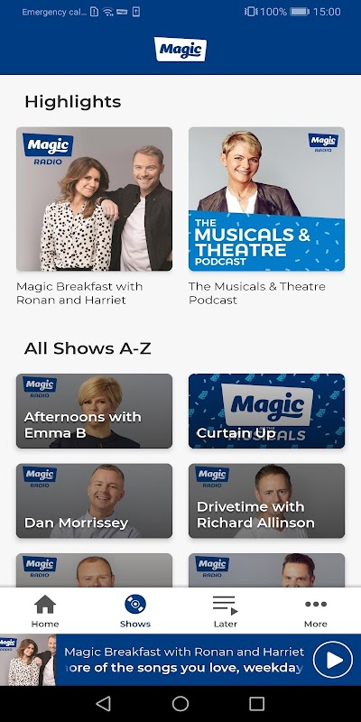 You can now listen live and on-demand to all your favourite shows, podcasts and playlists in one place. Magic Radio shows include Magic Breakfast with Ronan Keating and Harriet Scott & Weekend Breakfast with Tom Price.