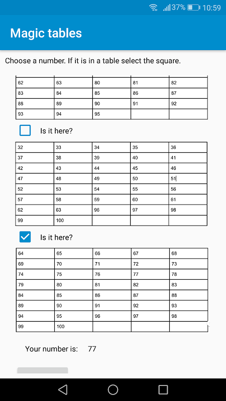 Think of a number, select the tables, the machine'll guess it at the first shot!