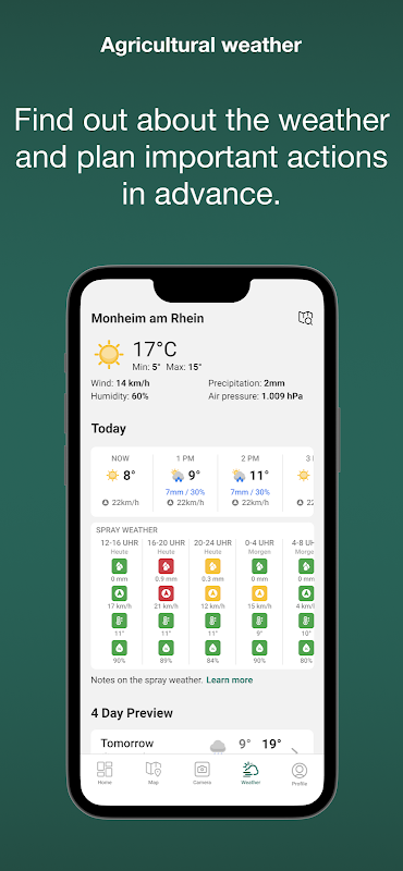 // Identify problems: With integrated image recognition, you can identify weeds and diseases quickly and easily. You can also analyze pests in your yellow traps. Within seconds you have documented the causes of damage in your field - even without an internet connection.