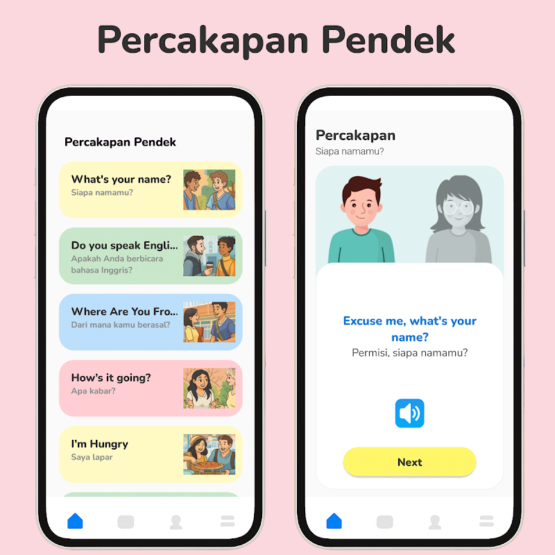 This application also contains common memorization which is most often used in everyday English conversation. You will quickly speak English because this application is also equipped with short English conversations for you who are at home.