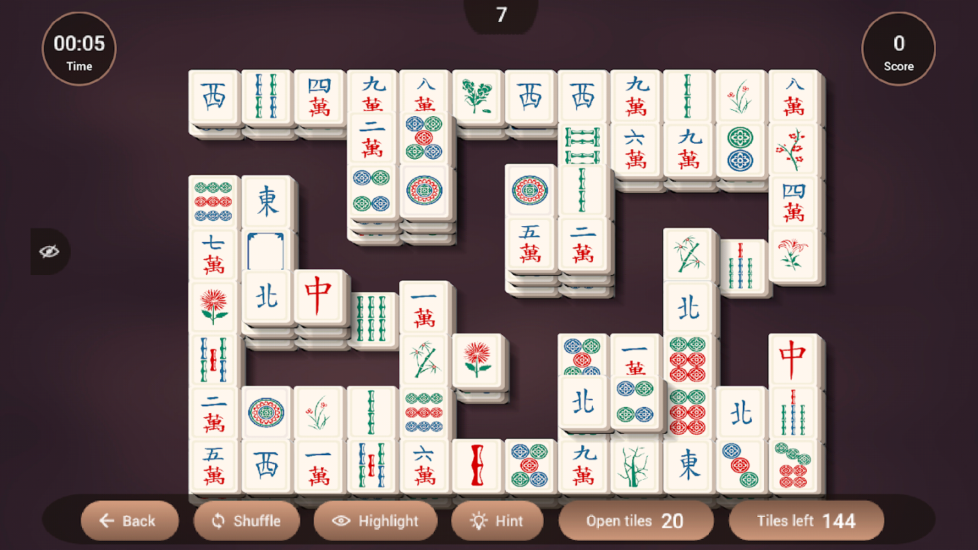 A solitaire matching game that uses a set of mahjong tiles rather than cards.