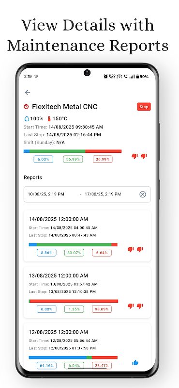📑 Reports with Date Filters – Easily view and manage machine reports with custom date ranges.