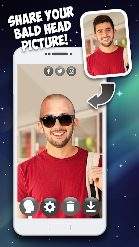 Become bald instantly with the head change photo editor! Get the 😉”Make Me Bald App - Prank Photo Editor”😉 and have one of the best selfie editor makeover effects! Add the funny stickers for photos to your picture with the help of the hair editor app for men! “Change your look app” in the makeover app and bald head funny photo montage! Visit the barber shop simulator and have a new hair style! The hair trimmer editor will remove your hair in no time! This hilarious make me bald camera can be used as a hair razor prank for your friends! Create shaved head easily thanks to the silly face camera and make me bald with machine hair games. Enter the virtual hair salon and get a perfect bald hairstyle. Transform your old and new photos into shaving prank without the receding hairline. The photo change app download and “hair salon” will change your look completely! Browse through the 😉Make Me Bald App - Prank Photo Editor😉 hair editing app and have fun trying out the huge number of bald head stickers for free!