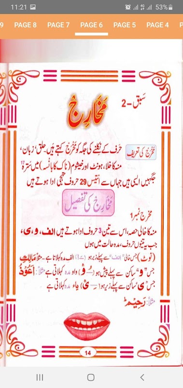 From this app you will understand Makhraj and Tajweed, and how to perform tilawat Qur'an e Pak.