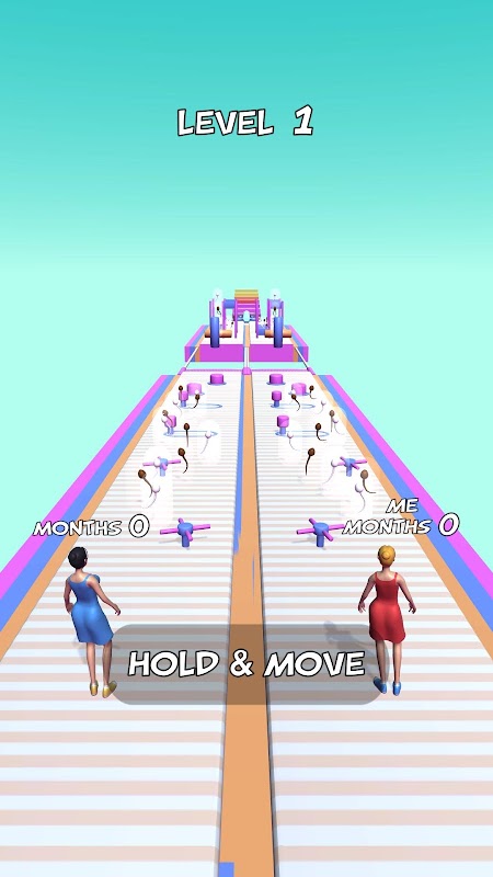 Collect bonuses while you run along the track. If you encounter an obstacle, you will lose the accumulated bonuses and slow down. Overtake your opponent and get to the birthing chair first!