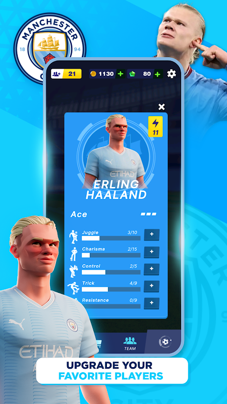 Be the manager of an official Man City Freestyle Academy and prepare all your football stars to be legendary freestyle jugglers! Attribute points trained become advantages in the league challenges!