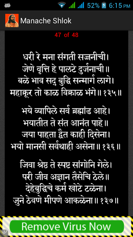 "Manache Shlok" written by Shri Samarth Ramdas Swami. This is for your regular chanting and reciting, specially formatted for ease of reading. There is no audio so one would focus on recitals. Shree Ram!