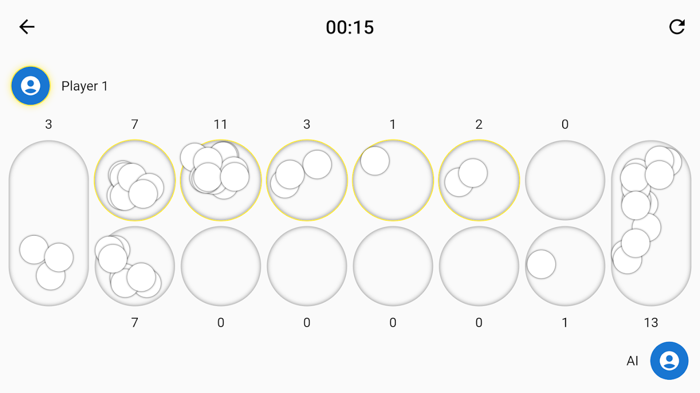 The mancala is a two-player turn-based strategy board game played