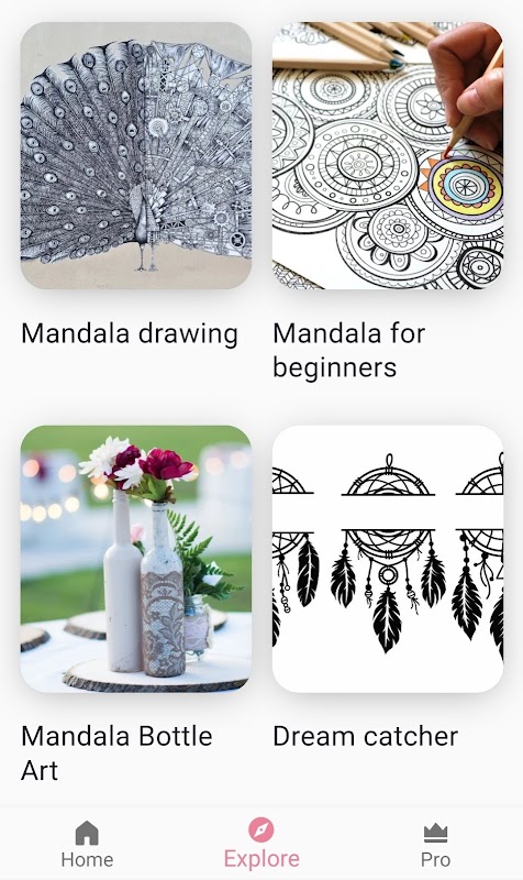 The mandala art learning app contains many popular Mandala drawing ideas such as