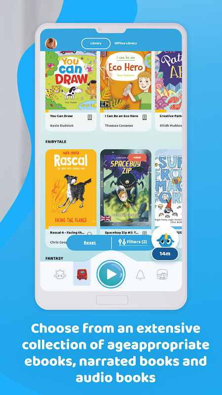 - An extensive library of age-appropriate e-books and audio books automatically filtered to their level