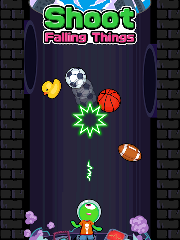 * Shoot at falling objects to bounce them off, and eventually they will be destroyed.
