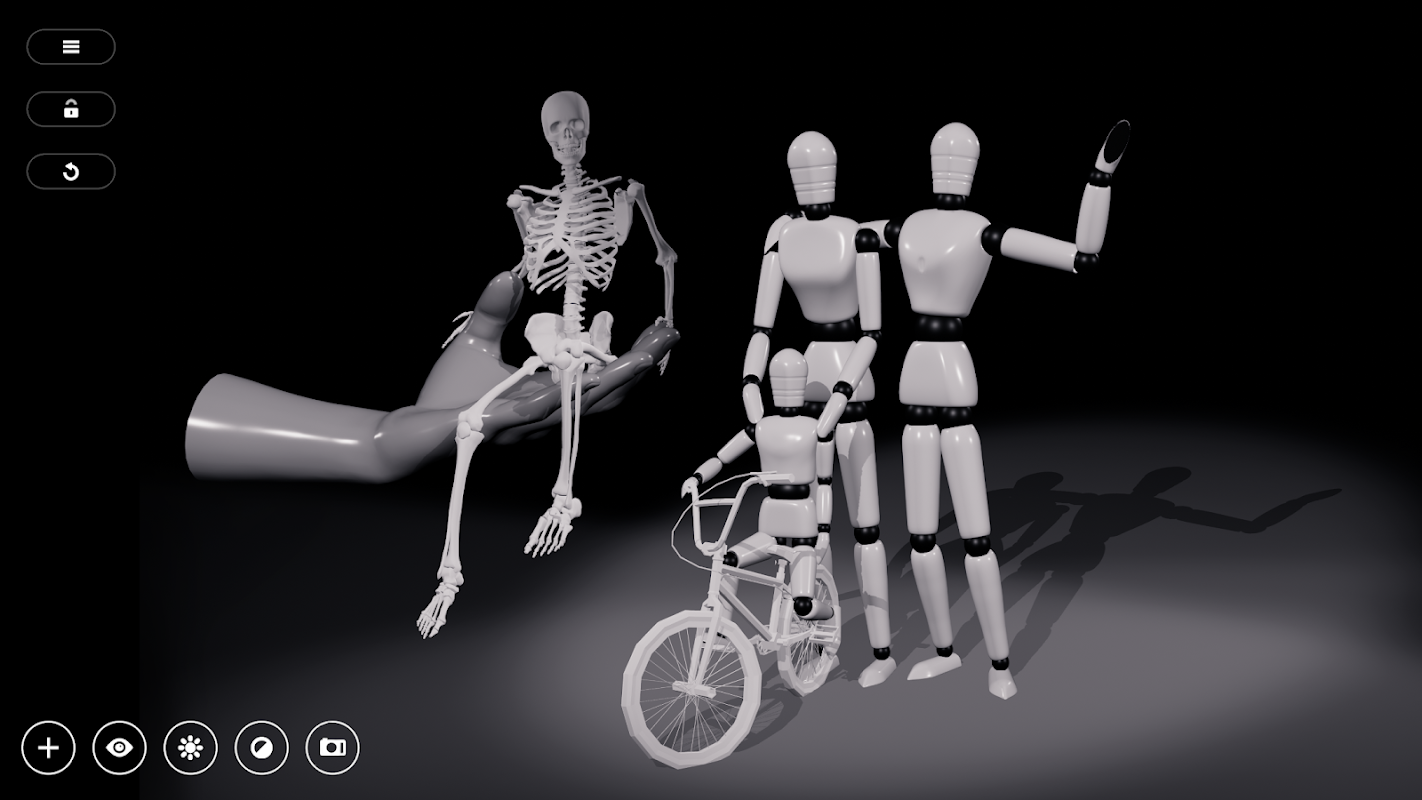 The classic wooden doll was used as an interactive reference for human anatomy to help with challenges like proportion and depth. We improve the experience of drawing the human figure with various 3D models and features to help you with shape recognition, shading, perspective and stance.