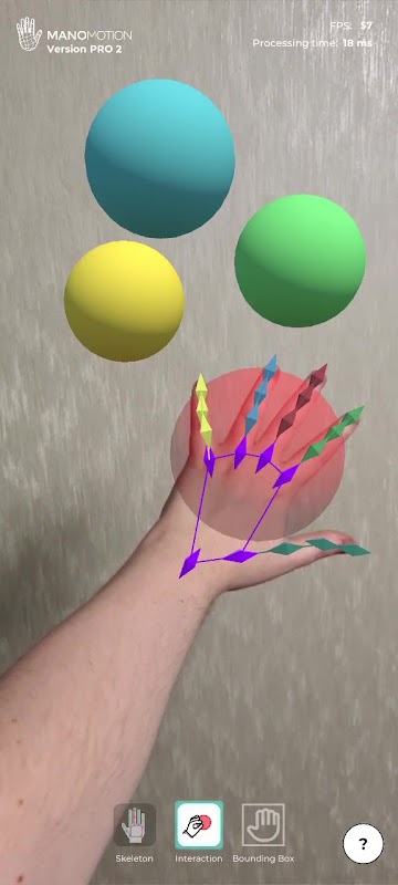 This application allows you to use your hands to interact with virtual content via the phone's camera. Utilize the powerful features such as the 21 Skeleton Joints of the hand & the Gesture analysis provided by ManoMotion Technology.