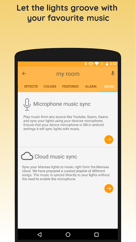 Mansaa SmartShine free app is used to connect the Mansaa SmartShine Bluetooth Wireless Multi-Color LED Lamp via Bluetooth 4.0 low energy technology. You will use app to control lights wirelessly to do various actions that you could not do with your lights before. All this is possible with your existing Android device and purchasing Mansaa SmartShine LED bulbs. The app designed is beautiful and very easy to use. Just download the app, install bulb into any lamp holder that you like and start controlling your lights wirelessly.