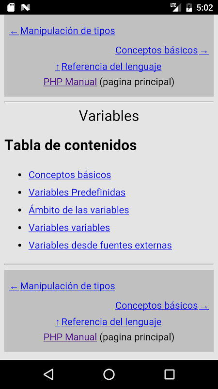 PHP documentation in Spanish