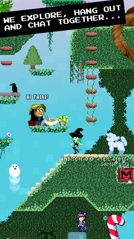 Meet people from all across the globe inventing this universe! We chat, draw, script, play, make music, and go on adventures together. Every pixel you see in Manyland was drawn by all of us -- making your own blocks is as easy as hitting create, and doodling something! In this open sandbox, nobody knows what happens next, so step in to shape the future.