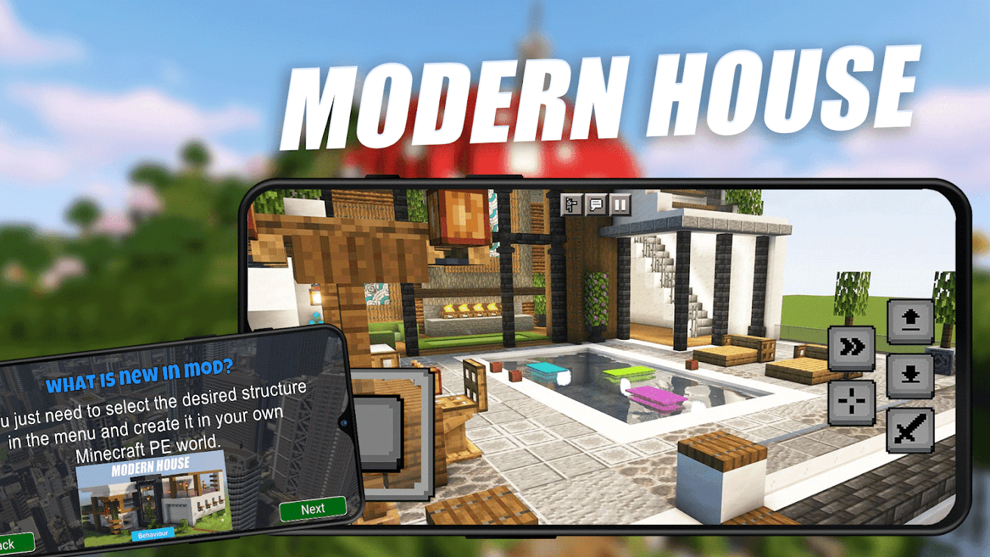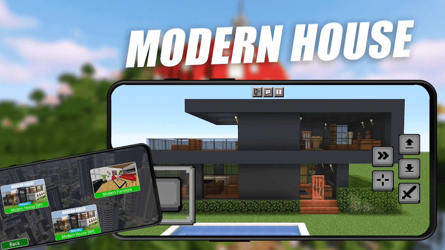 Thank you for choosing our add-ons Modern House for Minecraft Pocket Edition - build the most beautiful and large houses with pools, use a variety of equipment with our mods, be it TVs, microwaves or even refrigerators, play with friends and create entire cities with the Modern House for MCPE map.