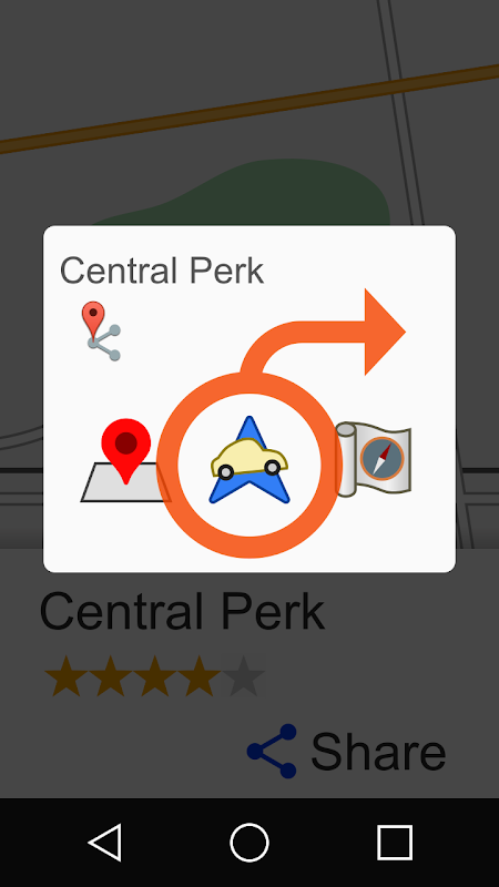 Through share action, displays the location on another map app.