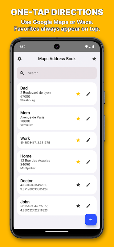 Organize addresses, save locations & navigate easily!