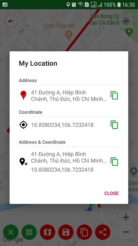 Share location to your friends,you can share current your location via email,facebook,instagram, twitter,zalo,viber,whatsapp,sms...
