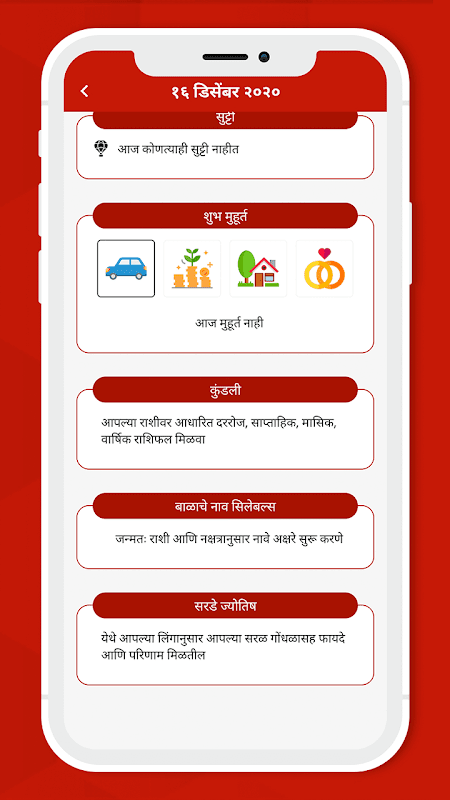 ✔ This app intends to bring you information on Marathi Calendar, Marathi Daily Panjika, Rashipalan and Government Holidays.