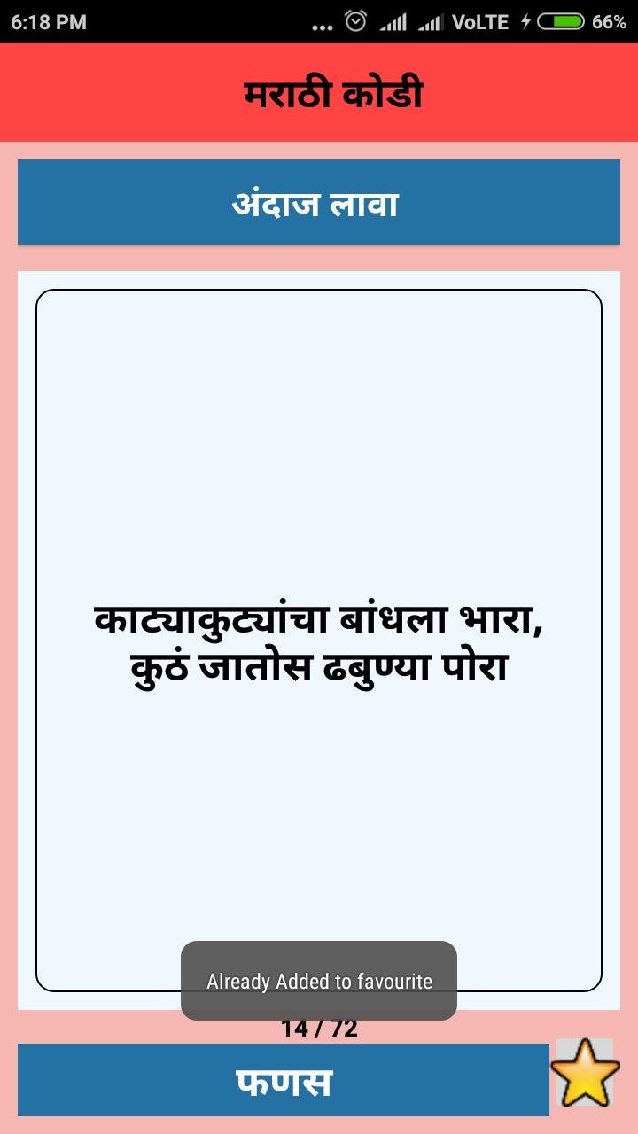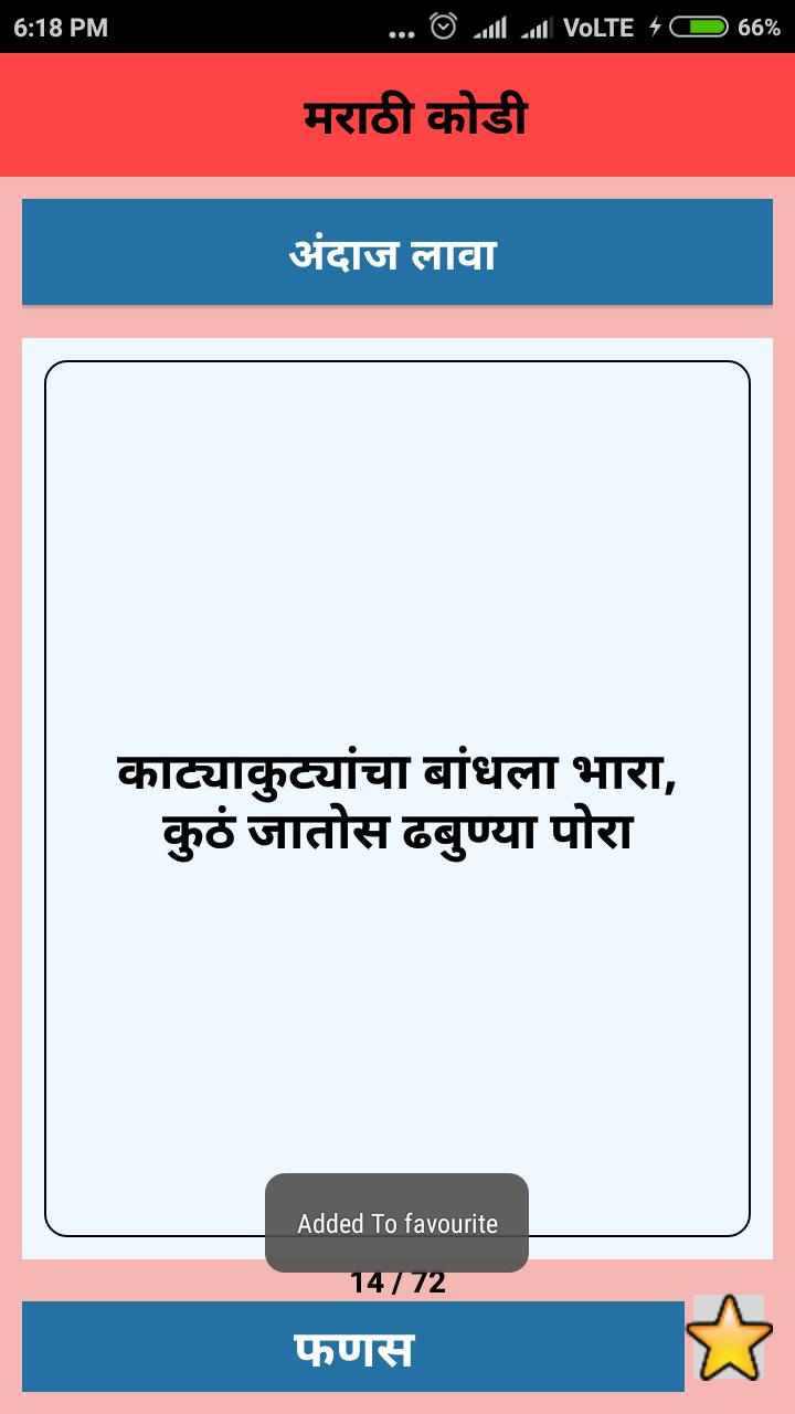 ३. जर एखादे कोडे जर तुम्हाला आवडले असेल तर तर तुम्ही तुमच्या फेवरेट्स यादीत साठवू शकता. त्यासाठी दिलेल्या फेवरेट्स बटणवर तुम्हाला क्लिक करावे लागेल.
