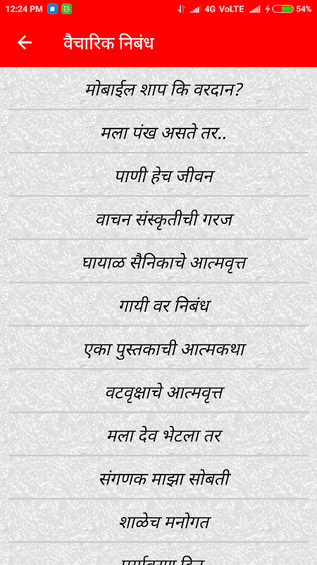 Marathi Nibandh Contains all essay in Marathi language which use for academics