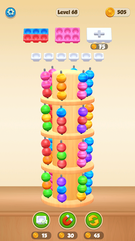Marble Sort combines quick thinking with smart strategy. Rotating racks to reveal the right beads and managing the waiting area creates a puzzle experience full of tension and fun. With boosters like Add Dock, Magnet, and Refresh, you’ll always have new ways to solve even the hardest levels.