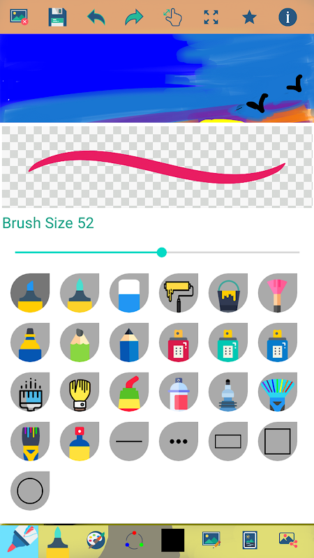 Marker is a simple app that you can use to create drawings on a blank canvas area or in the existing pictures, our unique collection of brushes will help you to create amazing artwork. A great selection of brushes is available from Calligraphy brush, Airbrush, School Pen, Roller brush, Spray brushes, Highlighter, Paintbrush, Eraser, and Rainbow brush.