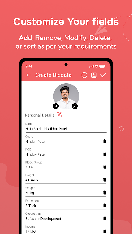 This app can be the perfect app to find your partner by creating awesome bio data. You can recommend and suggest this app to your friends and relatives so they can also create best bio data for them.