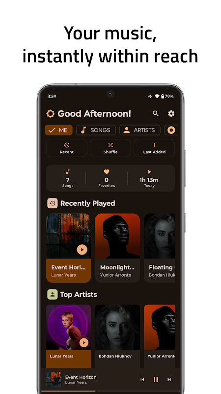 Immerse yourself in a visually stunning interface inspired by Mars. With deep orange-red tones, smooth transitions, and space-age vibes, your music player becomes part of the adventure.