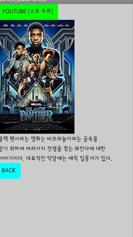 설명은 네이버나 크롬을 사용하면 더 좋을테지만, 굳이 유튜브에서 찾아 보지 않아도 이 앱만 열면 각 영화들의 요약 영상과 짧은 설명이 있기